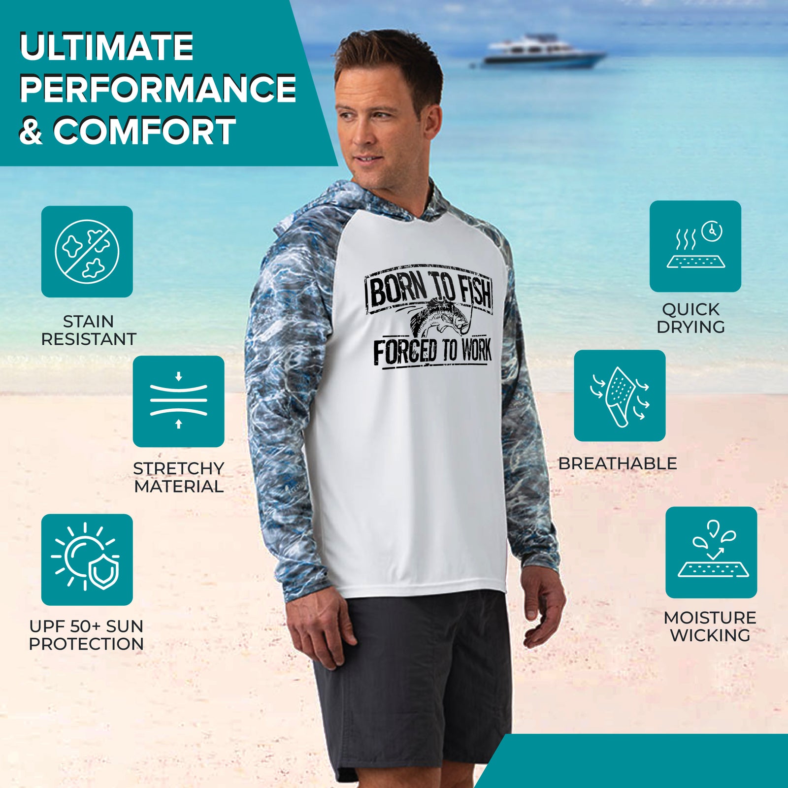 The Born To Fish Hoodies are designed for anglers who demand both comfort and protection, featuring an ultra-soft, lightweight, and stretchy fabric that moves with you while offering superior breathability, moisture-wicking, and quick-drying properties to keep you cool and dry all day long. Engineered with advanced stain-resistant technology, these hoodies repels dirt, fish blood, and other tough stains, ensuring you stay fresh and clean even after the longest fishing trips. With built-in UPF 50+ sun protection, it effectively shields your skin from harmful UV rays, making it the perfect choice for fishing under the scorching sun. Whether you're casting lines from a boat, wading through rivers, or relaxing on the shore, this high-performance hoodies iare designed to keep you comfortable, protected, and looking great on every adventure.
