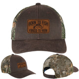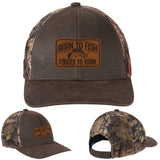 Born To Fish C891 Leather Patch Pigment Print Camo Mesh Back Trucker Cap