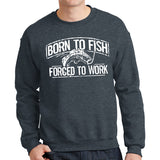 Born To Fish White Design Fleece Heavy Blend Pullover Crew Sweatshirt