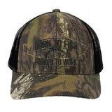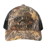 Born To Fish RU900 Embroidered Camo Mid Profile Snapback Adjustable Trucker Cap